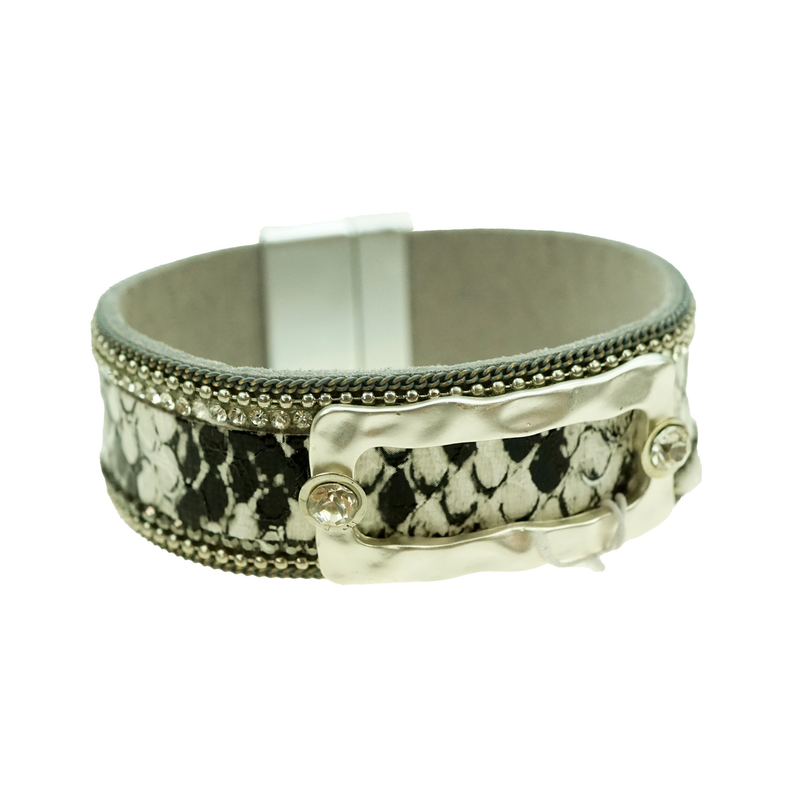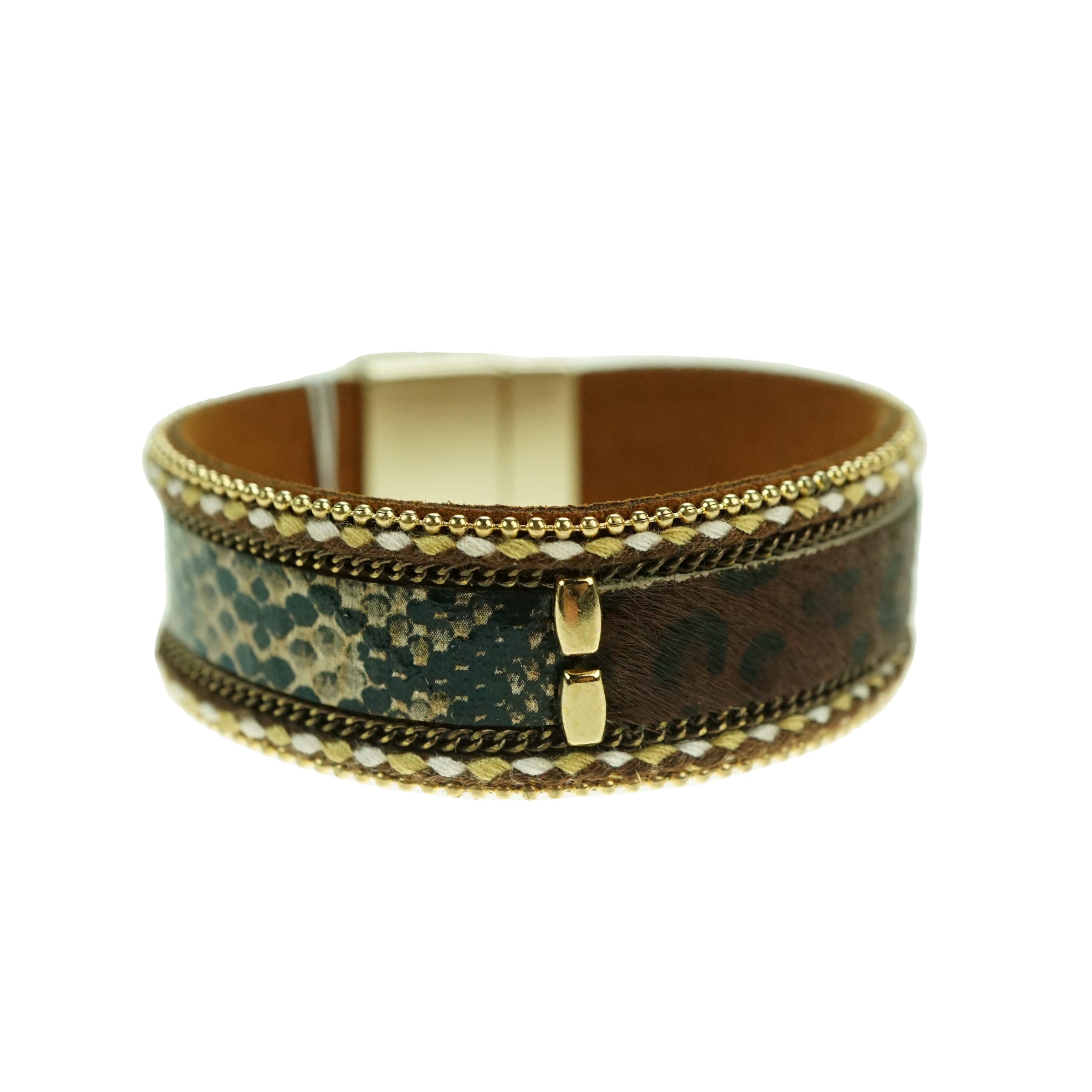 Leather look cuff bracelet with magnetic clasp.
