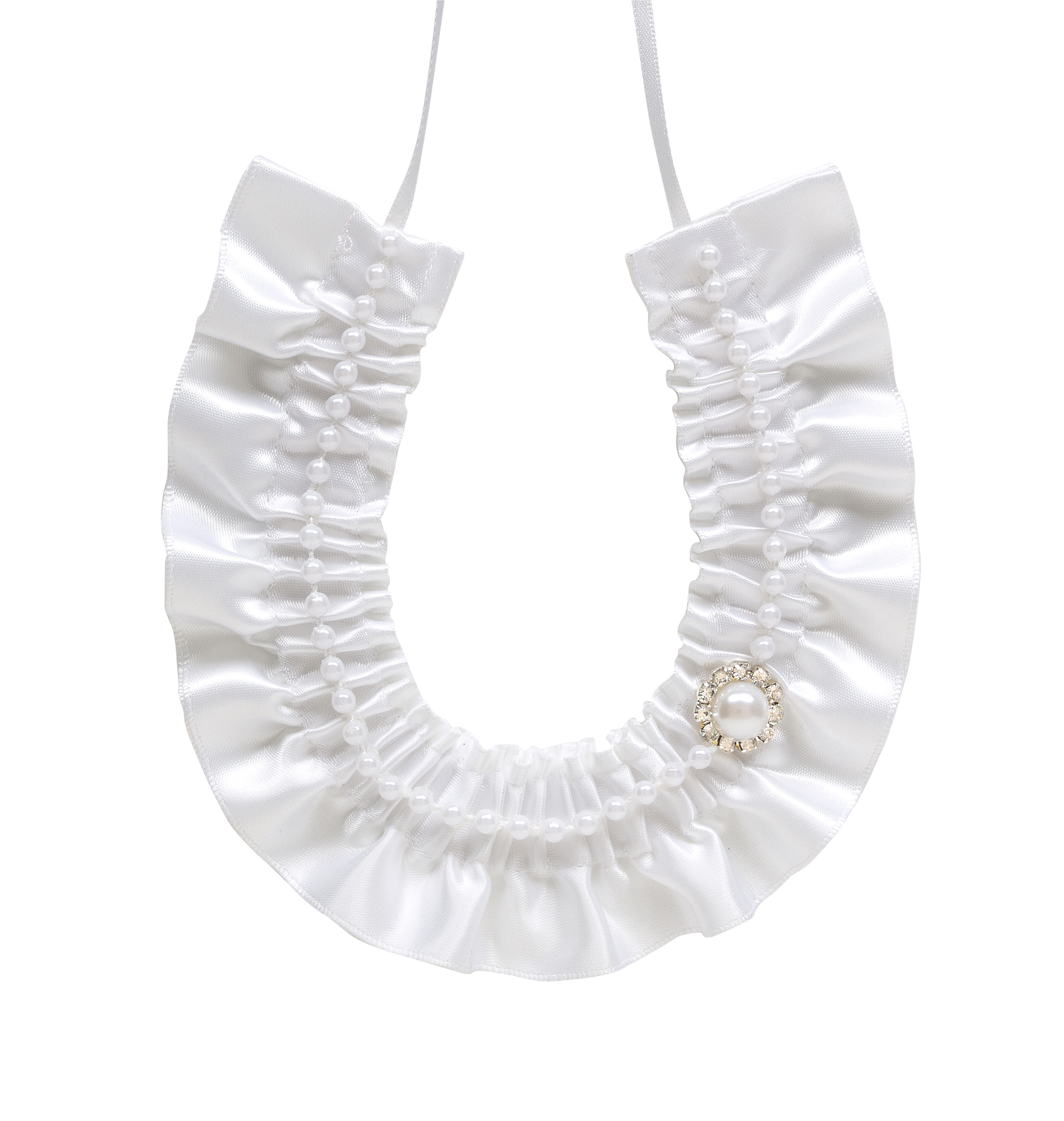Stunning satin white horseshoe with pearls & large pearl/diamante embellishment